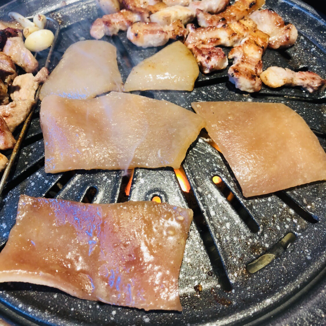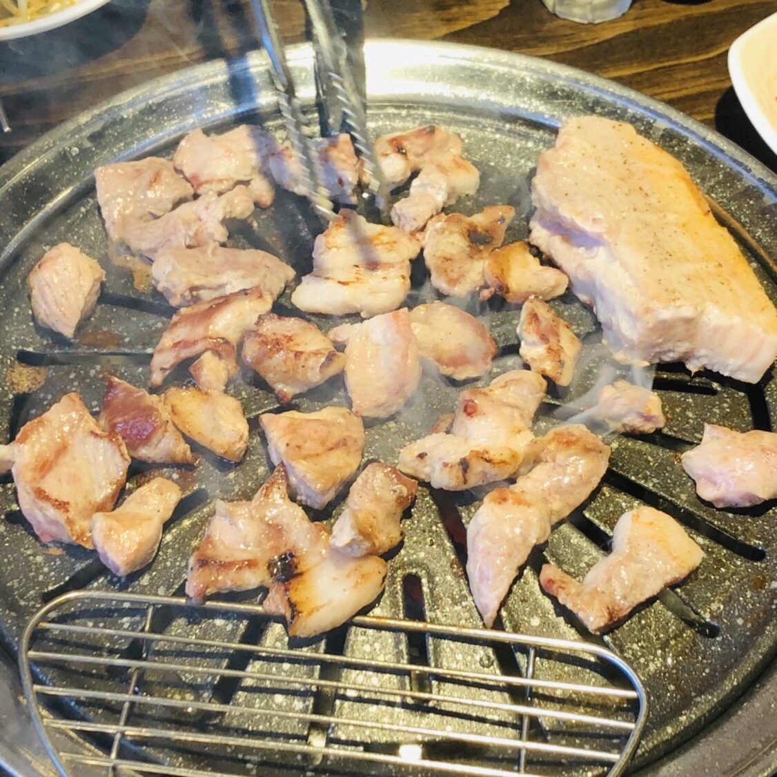 노릇노릇하게 익어가고있는 뒷고기와 삼겹살입니다.