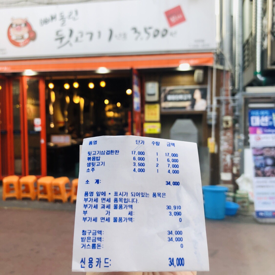 그렇게 총 34,000원에 먹었떤 뒷고기입니다!