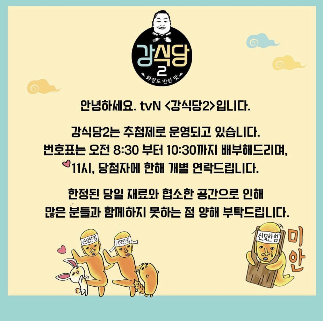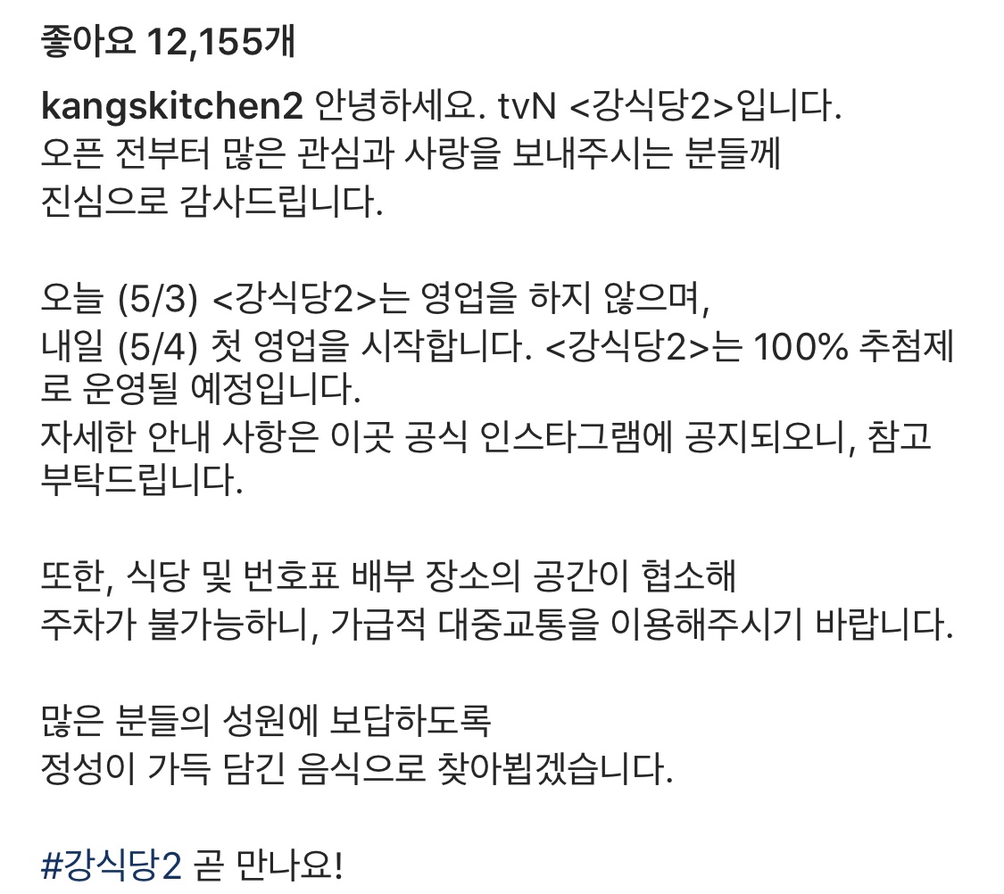 강식당 2의 인스타에서 제작진은 영업 관련 소식을 전할 것으로 알려지고 있습니다!
