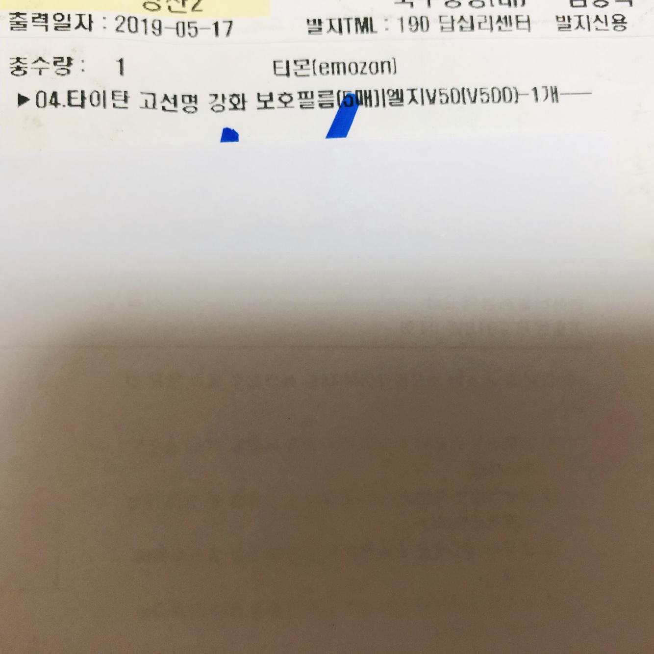 오오 타이탄의 강화보호필름. 비닐 안에 V50의 강화보호필름이 들어있습니다. 근데 뭔가 모르게 폭이 좁아보이는 느낌?
