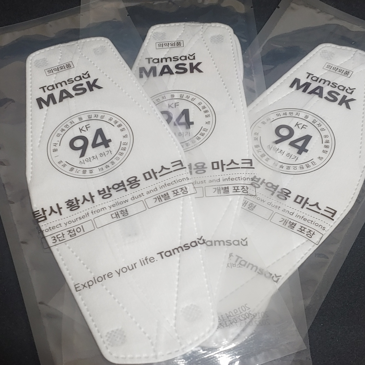 위의 마스크는 탐사마스크 개발사에서 만든 KF94황사 방역용 마스크입니다.