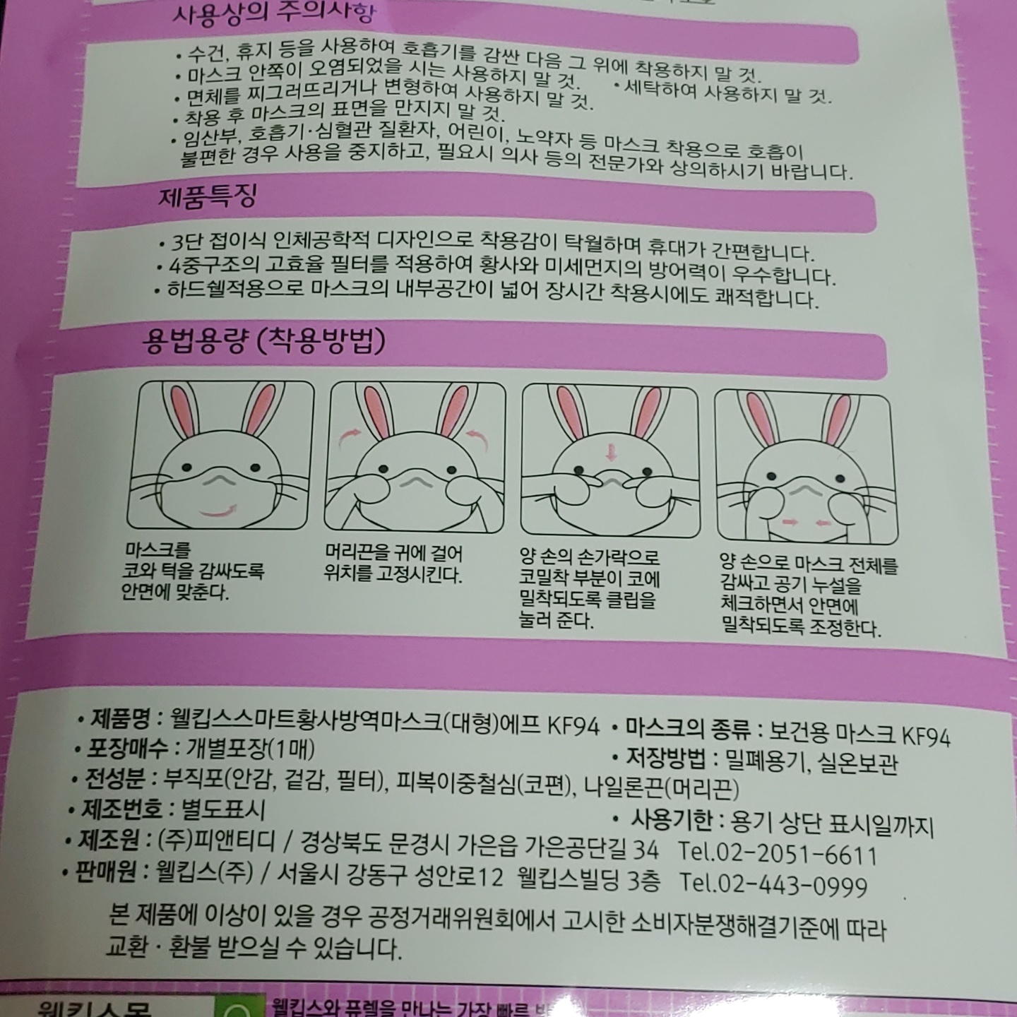 그 다음 주문했던 마스크입니다. 웰킵스 황사마스크인데 쿠팡에서 거의 대부분의 마스크가 빠르게 판매되어서 급한 마음에 돈 좀 주고 구매했던 마스크였습니다 ㅠㅠ. 전부 다 KF94인증 마스크로 구매를 했습니다.