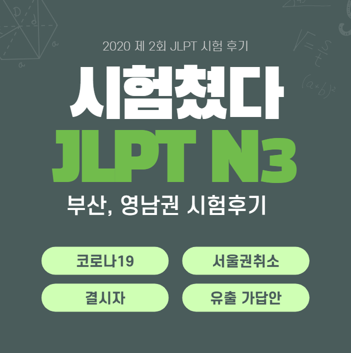 | JLPT N3 접수 가격 & 방법, 추가접수 막차 탑승! (0) | 2020.05.09 |